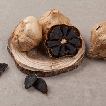 Black garlic starts as regular garlic, then is gently aged at low heat and controlled humidity for several weeks. This slow process turns the cloves black and transforms the flavor—no longer sharp or spicy, but deep, sweet, and savory, with notes of balsamic, molasses, and tamarind. No additives, no burning, just time.
